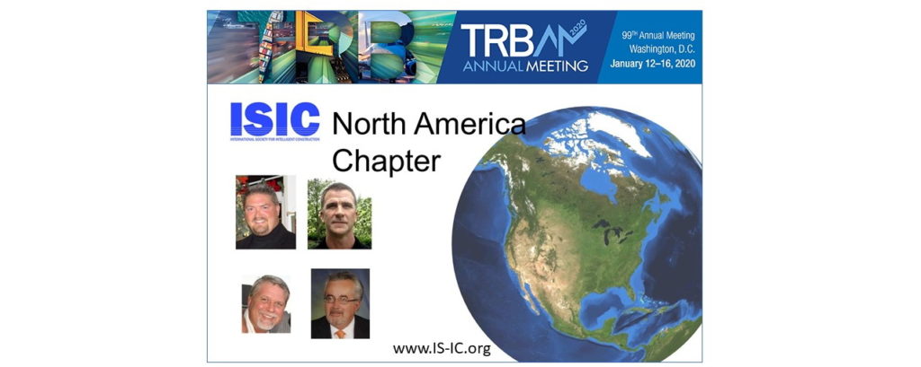 The next International Society for Intelligent Construction (ISIC) North America Chapter meeting will be held at the Washington Convention Center in Washington DC, USA on January 13th during the Transportation Research Board (TRB) 2020 conference. It will be at Room 303 from 1PM to 2:30 PM EST at the convention center, hosted by the US FHWA . The seats are limited! Please RSVP if you plan to attend this meeting! Visit www.IS-IC.org for Further information on ISIC. Detailed agenda for this meeting can be downloaded here.