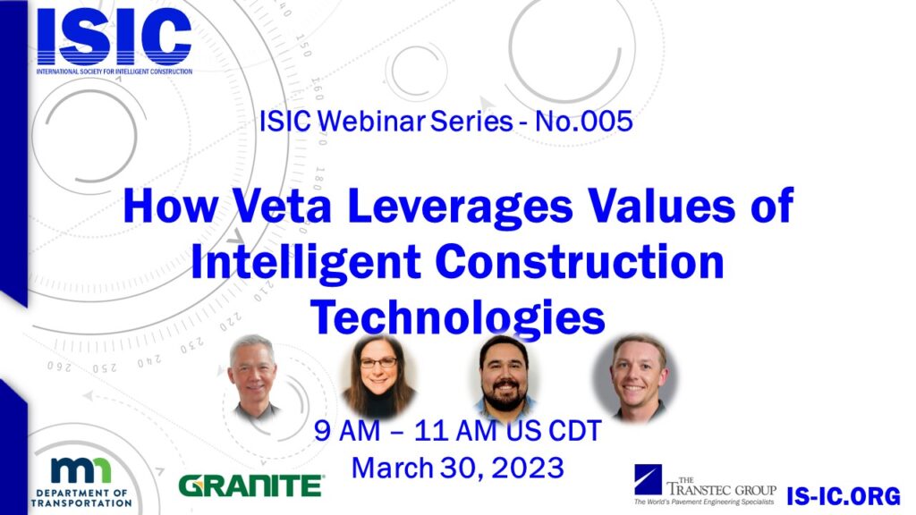 Recording: ISIC Webinar No. 005 – How Veta Leverages Values of Intelligent Construction Technologies March 31, 2023 George The ISIC Webinar No. 005 – How Veta Leverages Values of Intelligent Construction Technologies was a great success! The recording is now available. Post navigation Previous PostISIC 2024 Conference Call-for-AbstractsNext PostTRB Co-Sponsor ISIC 2024 Conference